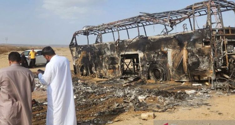 INFOGARUDA.COM: Bus membawa 24 orang penumpang jemaah umrah Indonesia terbakar di dekat