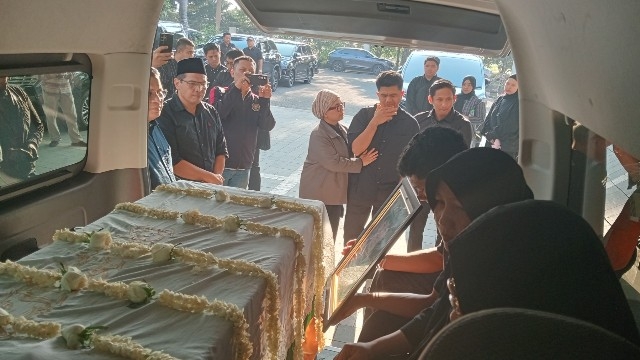 SURABAYA: Pagi masih buta, awan duka menyelimuti kedatangan jenazah pesenam artistik putra Indonesia asal Jawa Timur, Naufal Takdir Al Bari di Bandara Juanda Surabaya, Jumat, (3/10/2025).