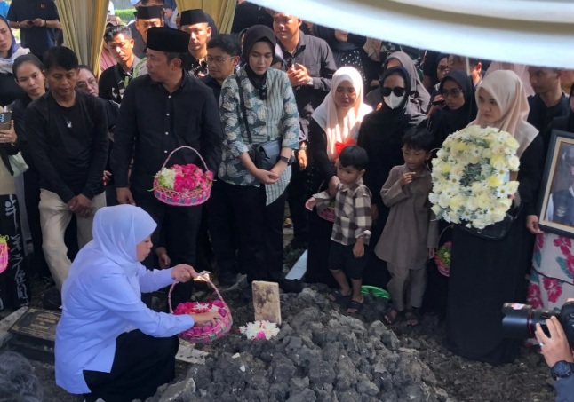 Sementara Gubernur Jatim, Khofifah Indar Parawansa ikut menghadiri prosesi pemakaman atlet gimnastik artistik putra, Naufal Takdir Al Bari, di Tempat Pemakaman Umum (TPU) Tlogopojok, Gresik.