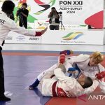 KUDUS: Satu-satunya atlet Sambo yang dikirim KONI Jatim , Iin Wijayanti. mempersembahkan