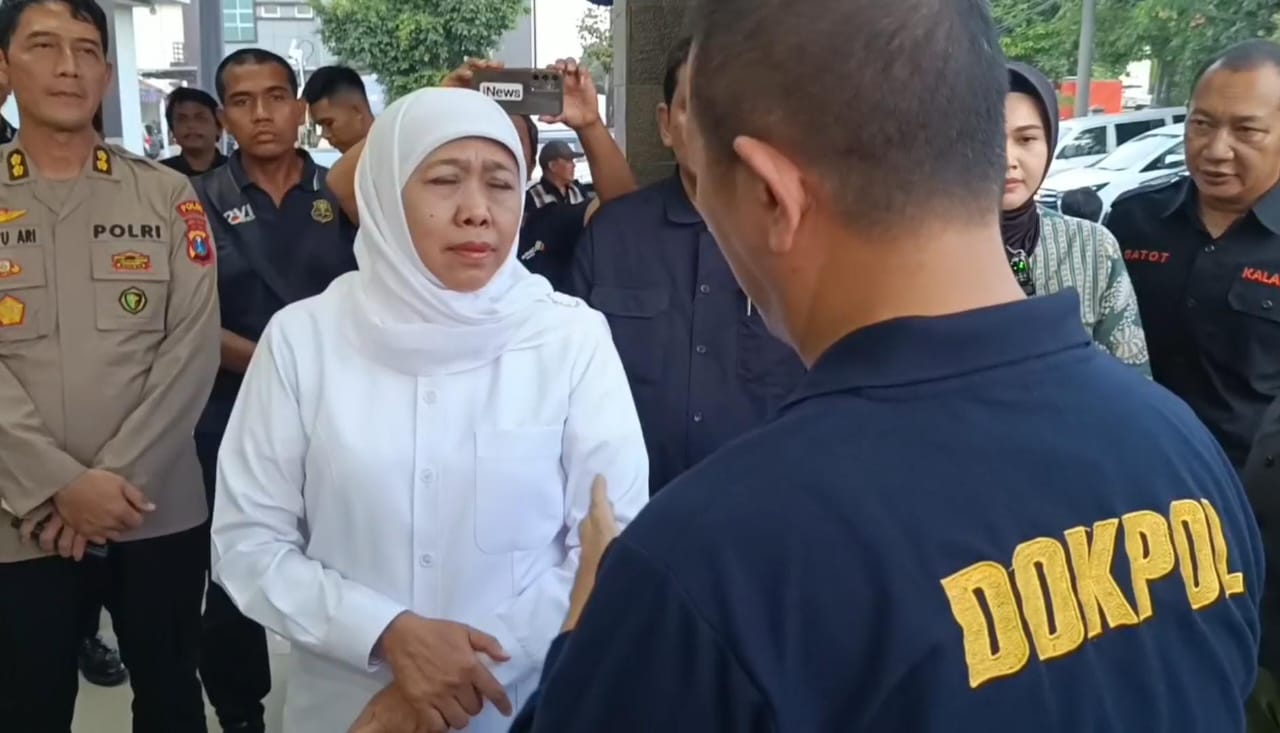 Surabaya – Gubernur Jawa Timur, Khofifah Indar Parawansa, melakukan tinjauan ke Posko Post Mortem di Rumah Sakit Bhayangkara Polda Jatim untuk memastikan proses identifikasi jenazah korban robohnya bangunan Pondok Pesantren Al Khoziny, Buduran, Sidoarjo, berjalan optimal.