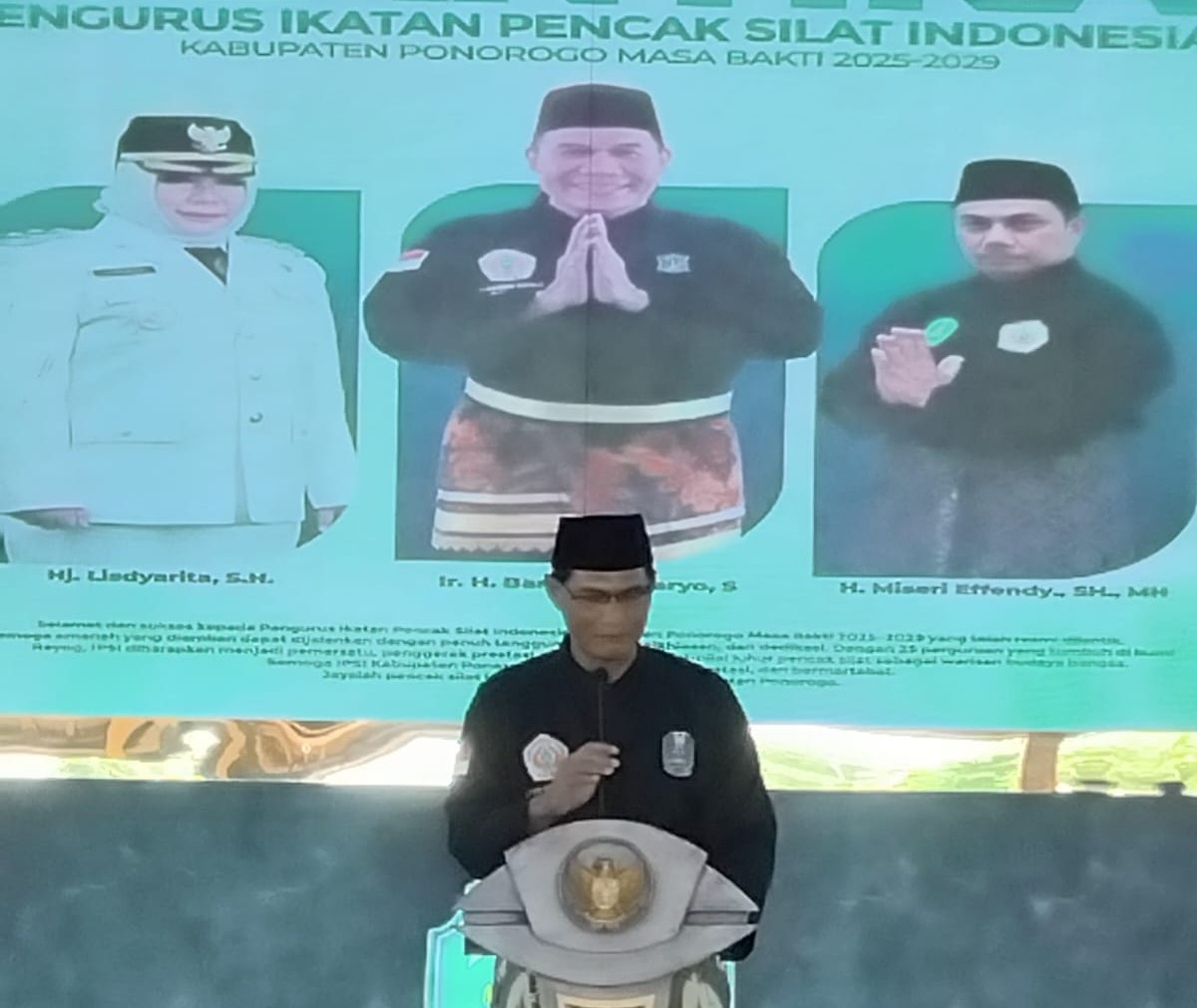 Ponorogo – Pengkab IPSI (Ikatan Pencaksilat Seluruh Indonesia) Kabupaten Ponorogo bertekad mencetak pesilat berkelas dunia. Tekad ini digaugkan saat pelantikan Pengkab IPSI Kabupaten Ponorogo periode 2025-2029 di Pendopo Kabupaten, Sabtu (17/1/2026).