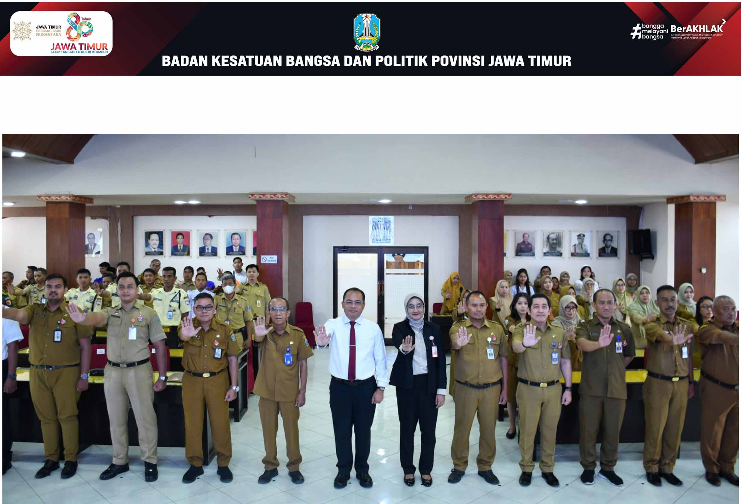 Melalui kegiatan pencanangan ini, Badan Kesatuan Bangsa dan Politik Provinsi Jawa Timur menegaskan tekadnya untuk menjadi bagian dari instansi pemerintah yang berintegritas tinggi dan berorientasi pada peningkatan kualitas layanan publik. @