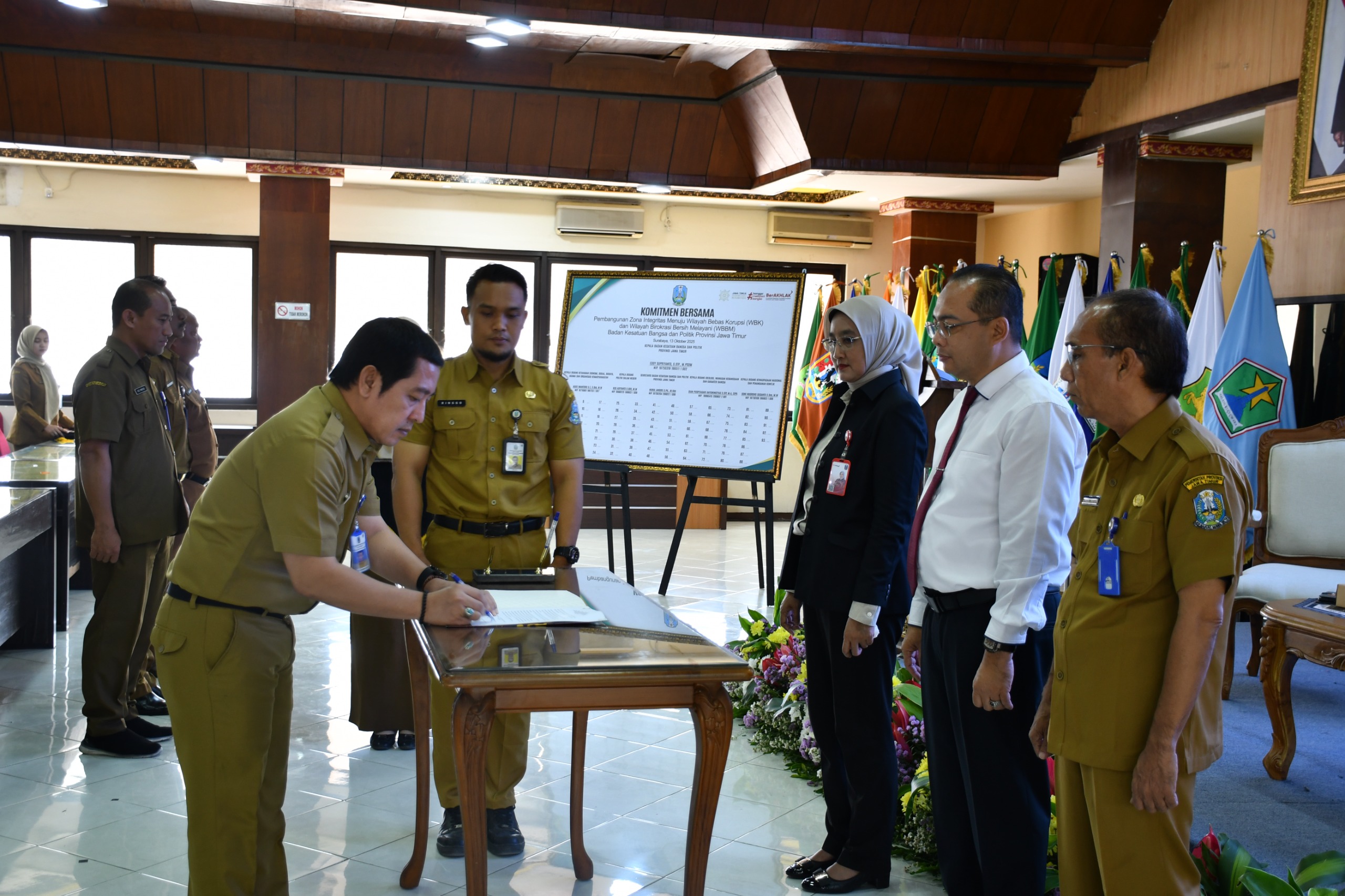 Penandatanganan pakta integritas disaksikan oleh Kepala Biro Organisasi Sekretariat Daerah Provinsi Jawa Timur serta Inspektur Pembantu IV Inspektorat Provinsi Jawa Timur, yang hadir sebagai saksi dan pendamping dalam proses pencanangan.