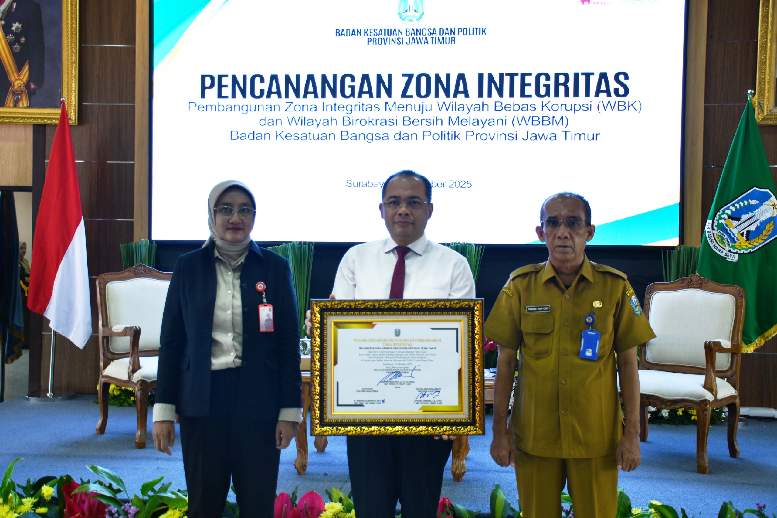 SURABAYA, 13 OKTOBER 2025 – Kepala Badan Kesatuan Bangsa dan Politik (Bakesbangpol) Provinsi Jawa Timur, Eddy Supriyanto, S.STP., M.PSDM bersama seluruh pegawai melaksanakan kegiatan ‘Pencanangan Zona Integritas’ sebagai langkah nyata dalam mewujudkan tata kelola pemerintahan yang bersih, transparan, dan akuntabel.