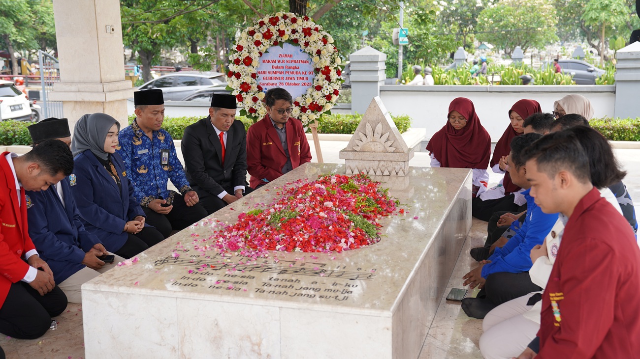 SURABAYA: Dalam rangka memperingati Hari Sumpah Pemuda ke-97 Tahun 2025, Pemerintah Provinsi (Pemprov) Jawa Timur melalui Dinas Kepemudaan dan Olahraga (Dispora Jatim) bersama Badan Kesatuan Bangsa dan Politik (Bakesbangpol Jatim), Biro Kesejahteraan Rakyat, dan Biro Pemerintahan, melaksanakan kegiatan ziarah ke Makam Pahlawan Nasional Wage Rudolf (WR) Soepratman, pencipta lagu kebangsaan Indonesia Raya, pada Sabtu, 26 Oktober 2025.