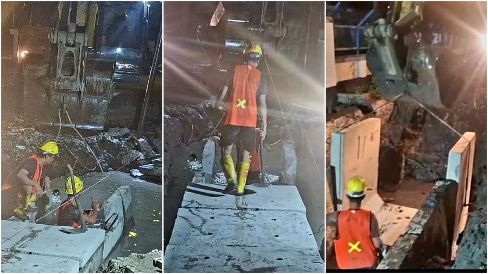 Pada tahap galian tanah menggunakan alat berat, lubang galian dilaporkan tergenang air dan beririsan dengan utilitas tertanam pada kedalaman berbeda. Box culvert diduga langsung dipasang dalam galian tergenang air setinggi orang dewasa tanpa pemompaan air, tanpa pengendalian elevasi, dan tanpa pengaturan kemiringan (slope) sebagaimana disyaratkan.