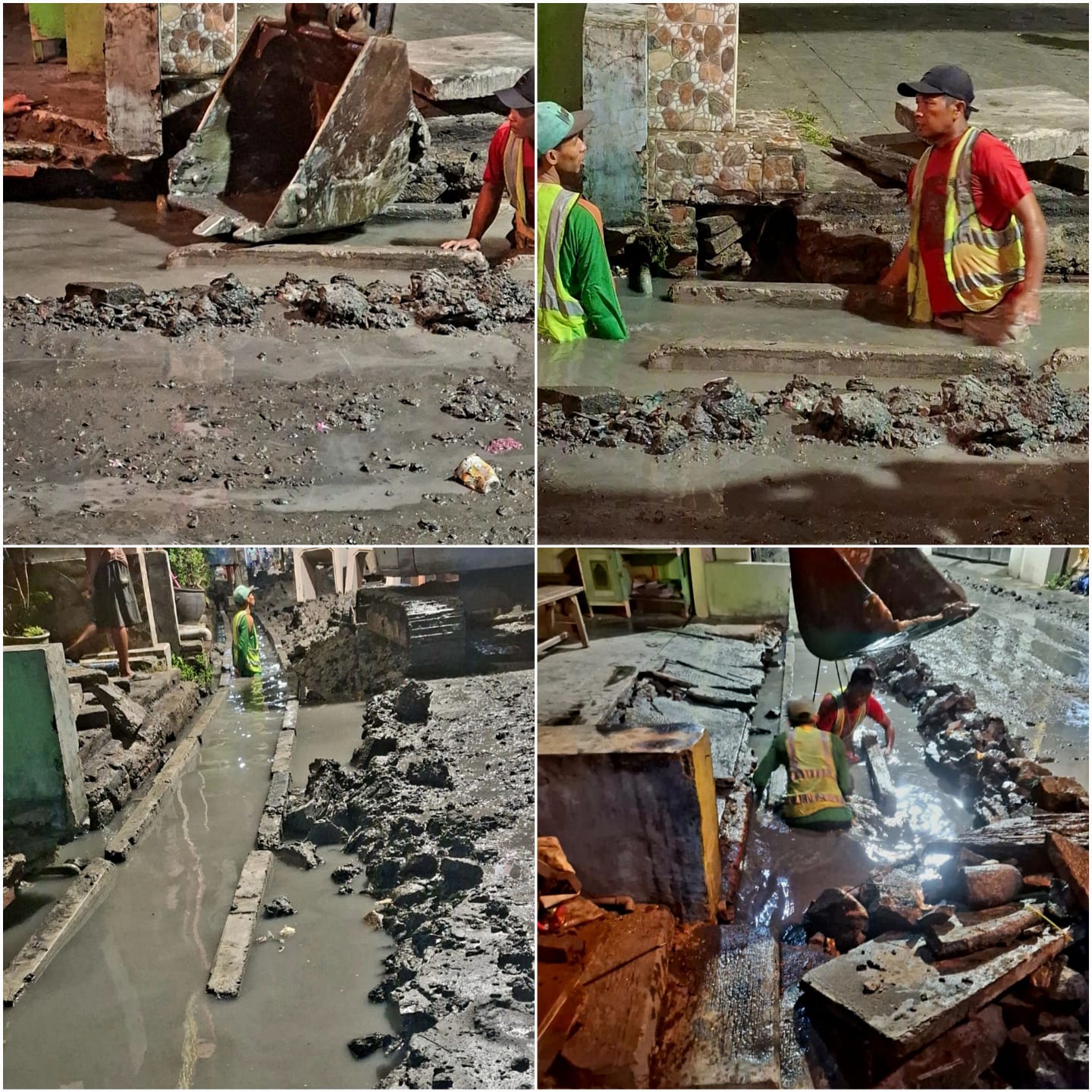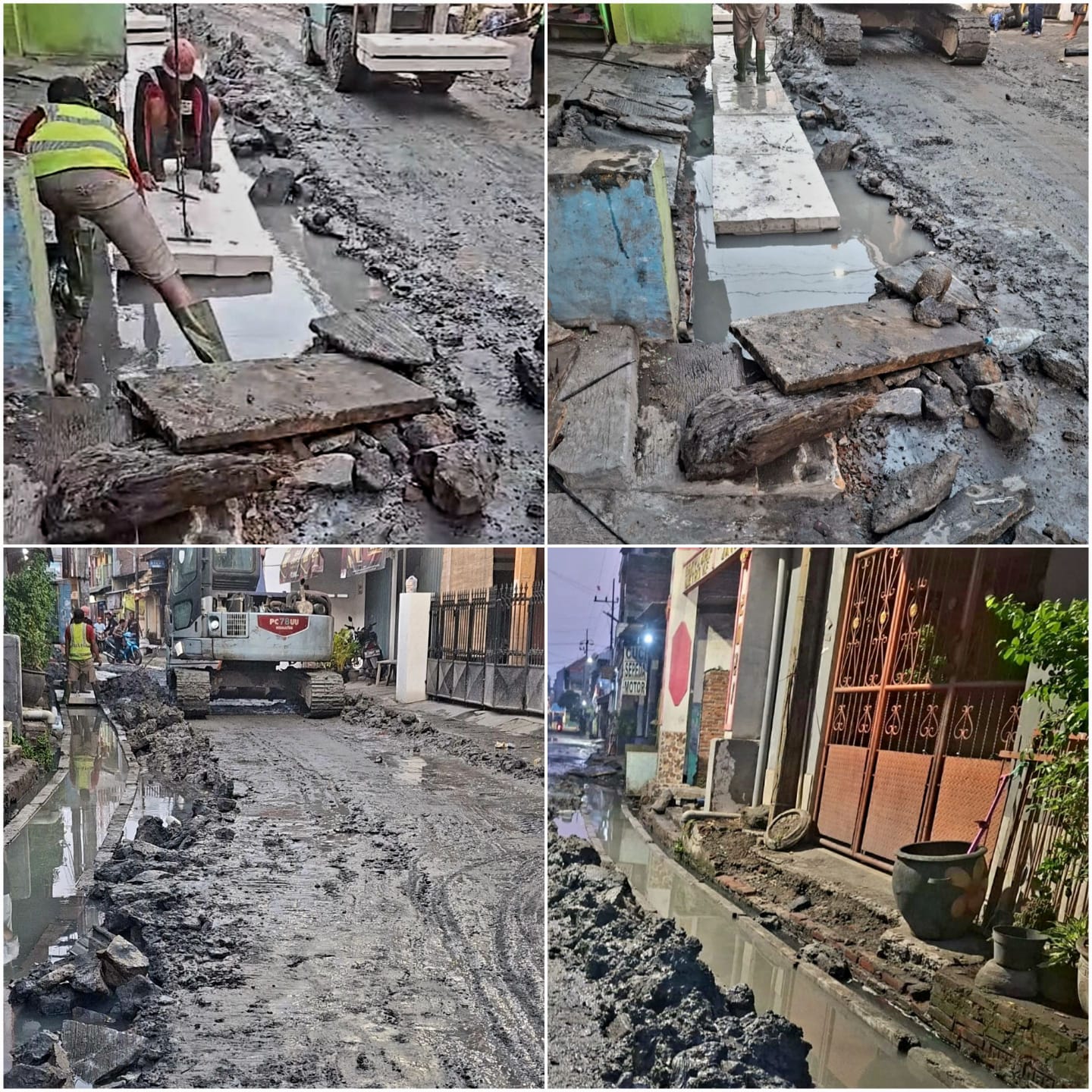 Sorotan utama tertuju pada kondisi galian yang sejak awal tergenang air. Lubang galian dipenuhi air tanah rembesan hingga menyerupai kolam, bahkan genangan mencapai permukaan jalan kampung.