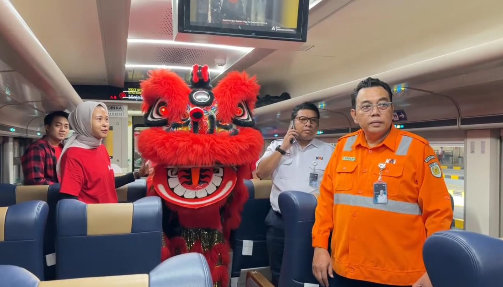 Tak hanya berlangsung di stasiun, kemeriahan Imlek juga dibawa hingga ke dalam perjalanan kereta api. Atraksi barongsai turut hadir di atas KA Argo Semeru, menciptakan pengalaman perjalanan yang berbeda bagi penumpang di momen libur panjang Imlek.