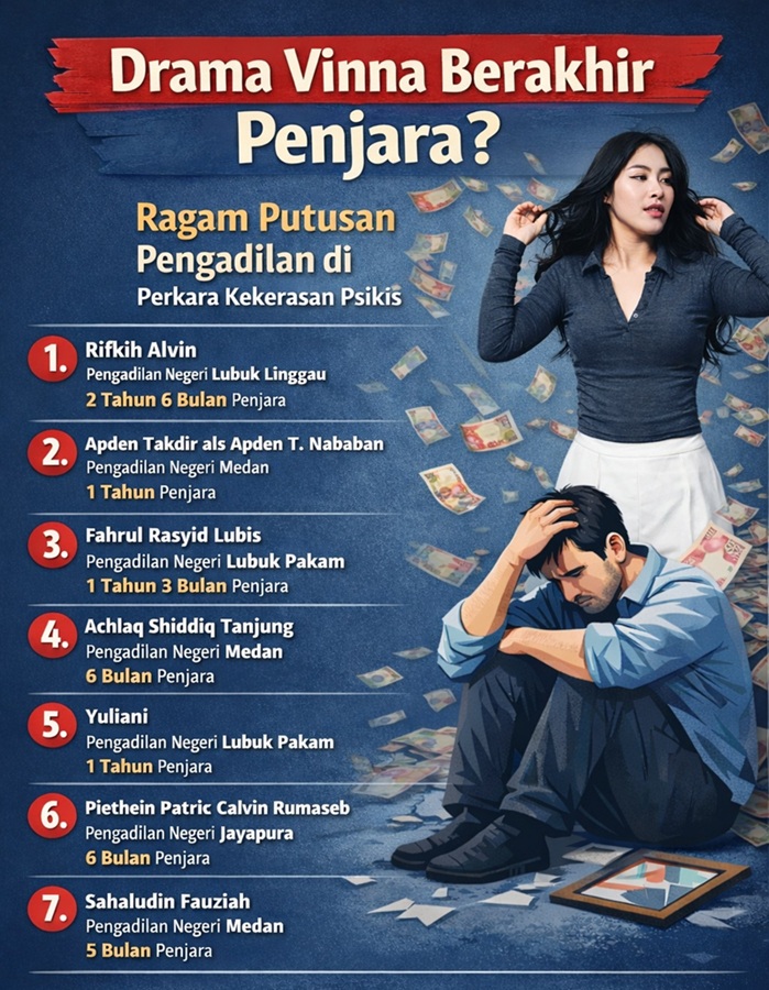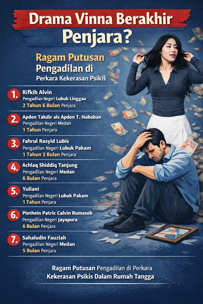 Kasus KDRT berupa kekerasan psikis, sudah sering terjadi. Dari data putusan Mahkamah Agung (MA), kasus serupa muncul di berbagai wilayah di Indonesia, termasuk di PN Surabaya. Kekerasan psikis tidak hanya dilakukan pria kepada istri tapi juga bisa sebaliknya, seperti yang dilakukan terdakwa Vinna.