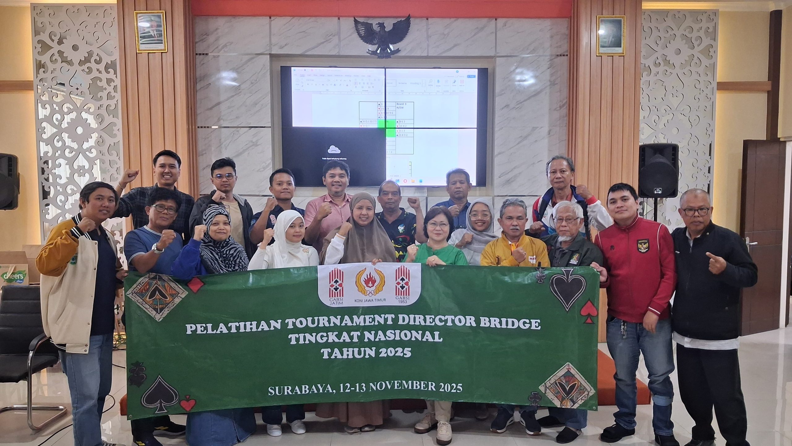 Surabaya. Pengurus Pengprov Gabungan Bridge Seluruh Indonesia (Gabsi) Jawa Timur masa bhakti 2025-2029 yang baru saja terbentuk langsung menggelar tiga kegiatan di Bulan November.  Mulai Pelatihan Tournament Director (TD) tingkat nasional, Training of Trainer (Tot) Pelatih dan Kejuaraan Provinsi (Kejurprov) 2025.